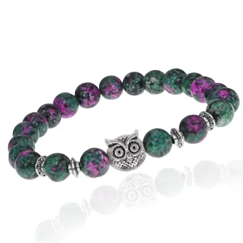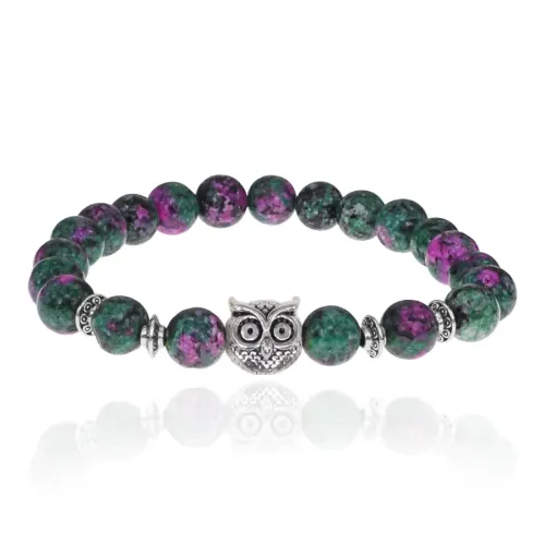 Браслет-амулет в виде совы с бусинами из синтетического цоизита.