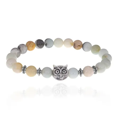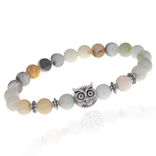 Браслет-амулет Сова с нат. камнем Амазонит 8мм BSHE-03-26S