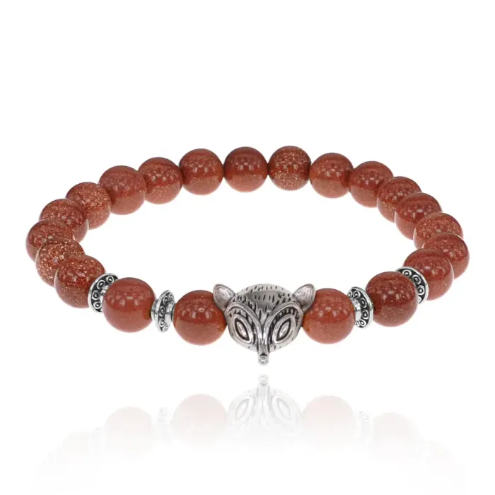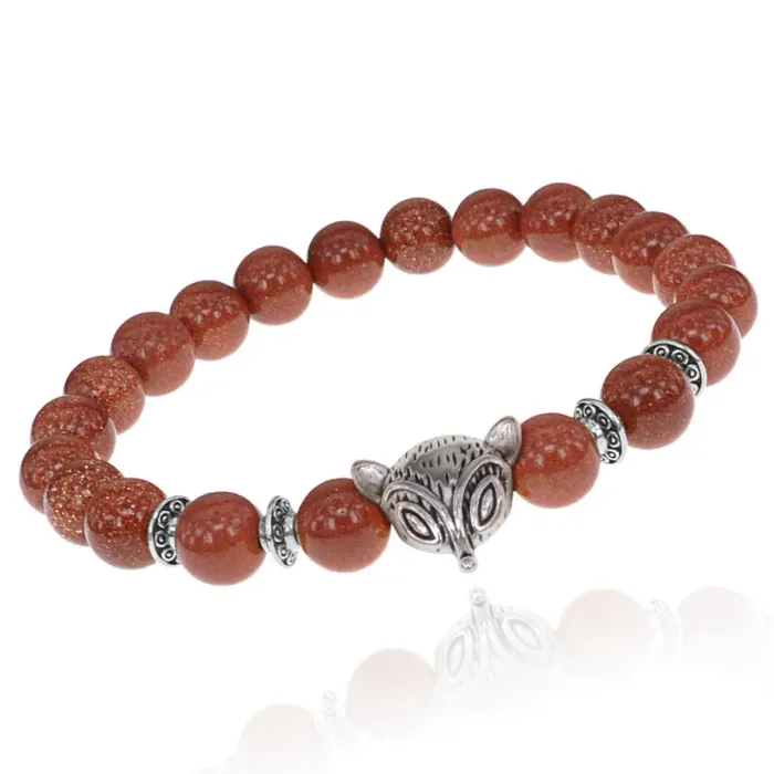 Браслет-амулет Лиса с синт. камнем Коричневый авантюрин 8 мм BSHE-04-01S