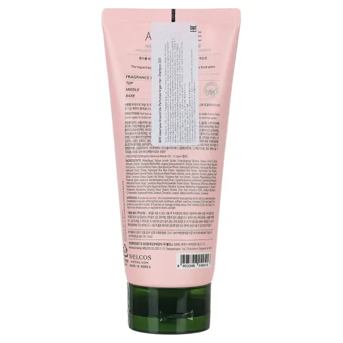 Парфюмированный шампунь с маслом арганы Around Me Perfumed Argan Hair Shampoo от Welcos объёмом 200 мл бережно очищает кожу головы и восстанавливает структуру волос. Благодаря высококонцентрированным протеинам в составе, шампунь обеспечивает интенсивный уход и питание, делая волосы мягкими и шелковистыми. Нежный цветочный аромат с верхними нотами бергамота, средними нотами розы и базовыми нотами ванили и мускуса придаст вашим волосам особую изюминку.