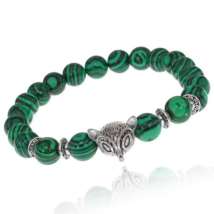 Браслет-амулет Лиса с синт. камнем Малахит 8мм BSHE-04-12S