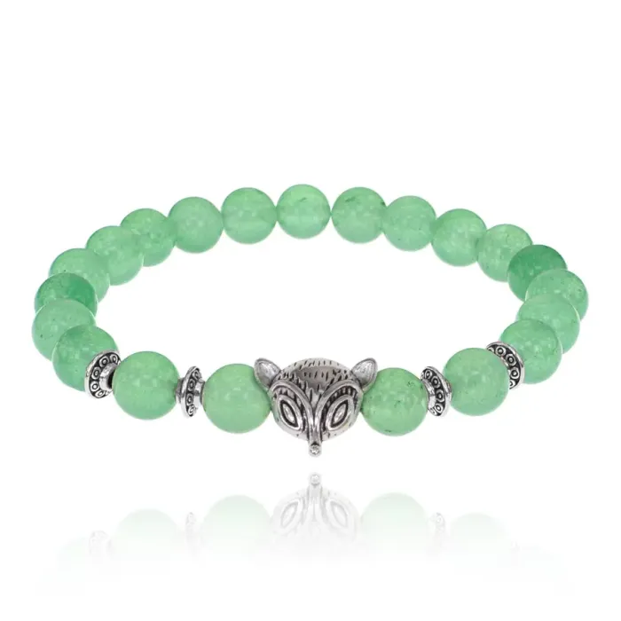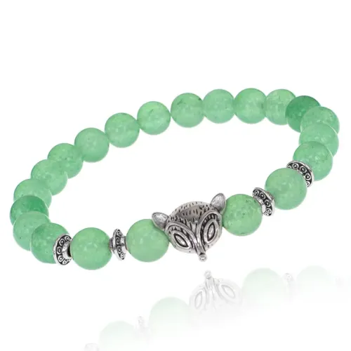 Браслет-амулет Лиса с нат. камнем Нефрит 8мм BSHE-04-13S