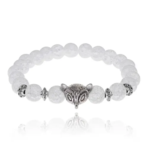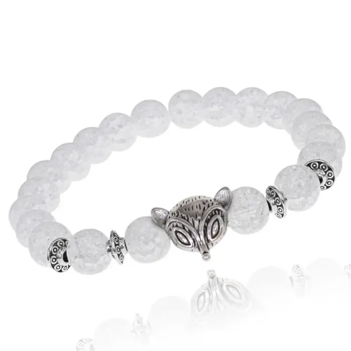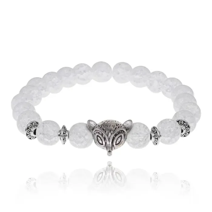 Стрейч-браслет-амулет с подвеской в виде лисы и бусинами из синтетического сахарного кварца.