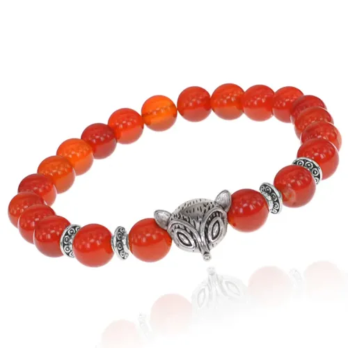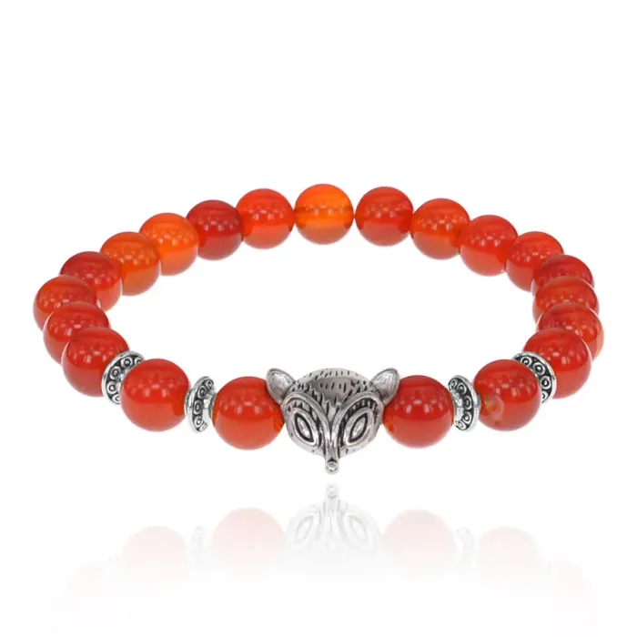Браслет-амулет Лиса с нат.камнем Сердолик 8мм BSHE-04-17S