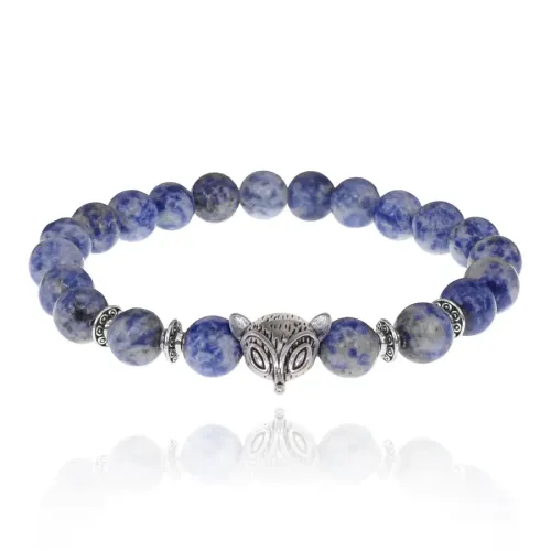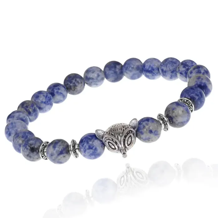 Браслет-амулет Лиса с нат. камнем Содалит 8мм BSHE-04-18S