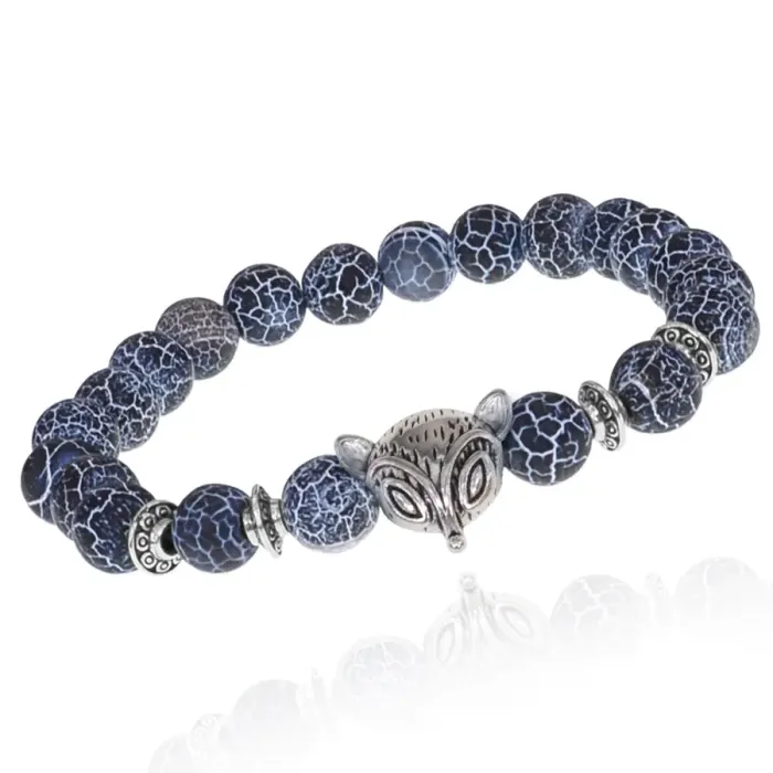 Браслет-амулет Лиса с нат. камнем синий Африканский агат 8мм BSHE-04-27S