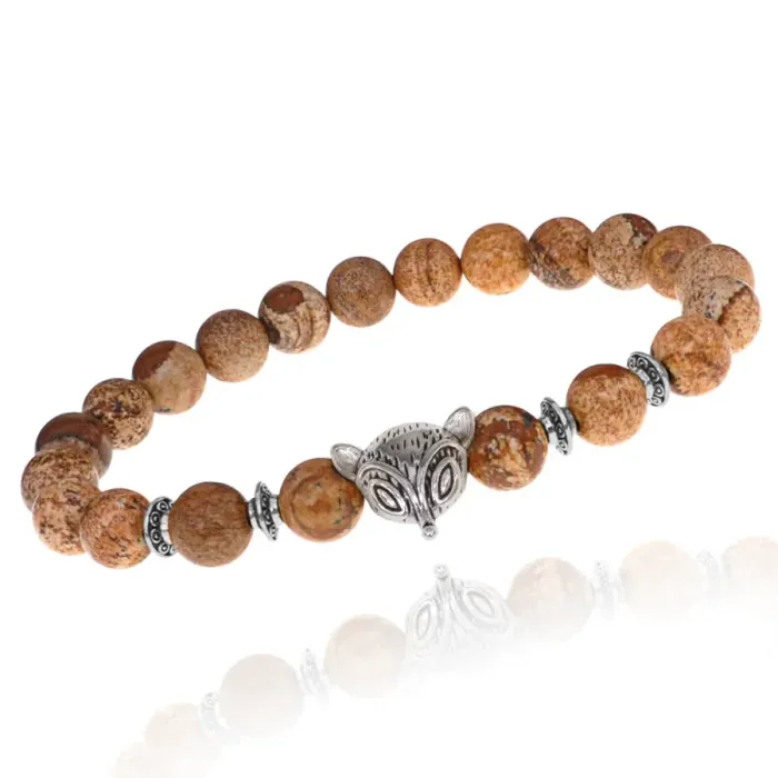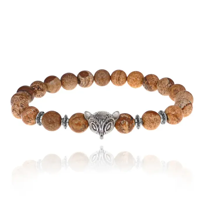 Браслет-амулет Лиса с нат. камнем Песочная яшма 8мм BSHE-04-30S