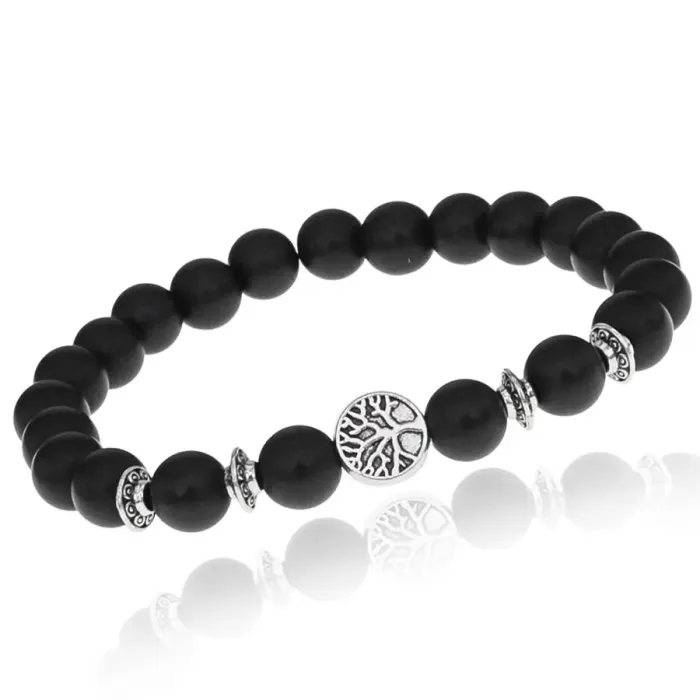 Браслет Дерево жизни с синт.камнем Шунгит 8мм BSHE-05-24S