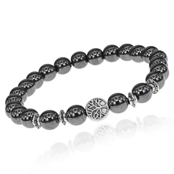 Браслет Дерево жизни с синт. камнем Гематит (не магнит.) 8мм BSHE-05-28S