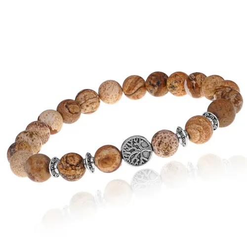 Браслет Дерево жизни с нат.камнем Песочная яшма 8мм BSHE-05-30S