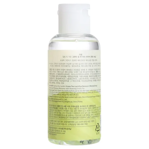 Жидкость для снятия макияжа с губ и глаз Healing Tea Garden Green Tea Lip & Eye Remover от The Saem — это эффективное средство, предназначенное для мягкого очищения и увлажнения кожи. Продукт эффективно удаляет макияж и загрязнения, оставляя кожу свежей и мягкой. Он подходит для использования в области вокруг глаз и губ.