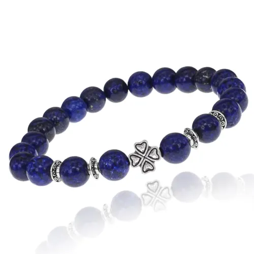 Браслет Клевер с нат. камнем Лазурит 8 мм BSHE-06-10S