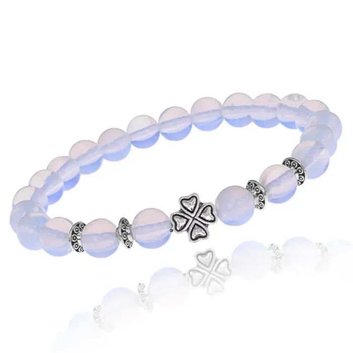 Браслет Клевер с синт. камнем Лунный камень 8мм BSHE-06-11S