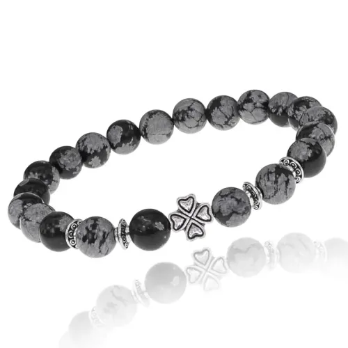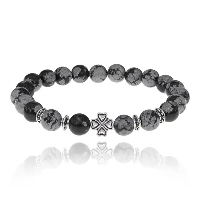 Браслет Клевер с нат.камнем Снежный обсидиан 8мм BSHE-06-14S