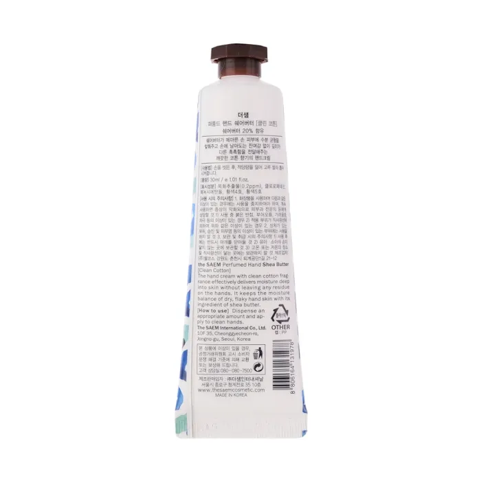 Крем для рук с экстрактом хлопка Perfumed Hand Shea Butter Clean Cotton 30 мл The Saem