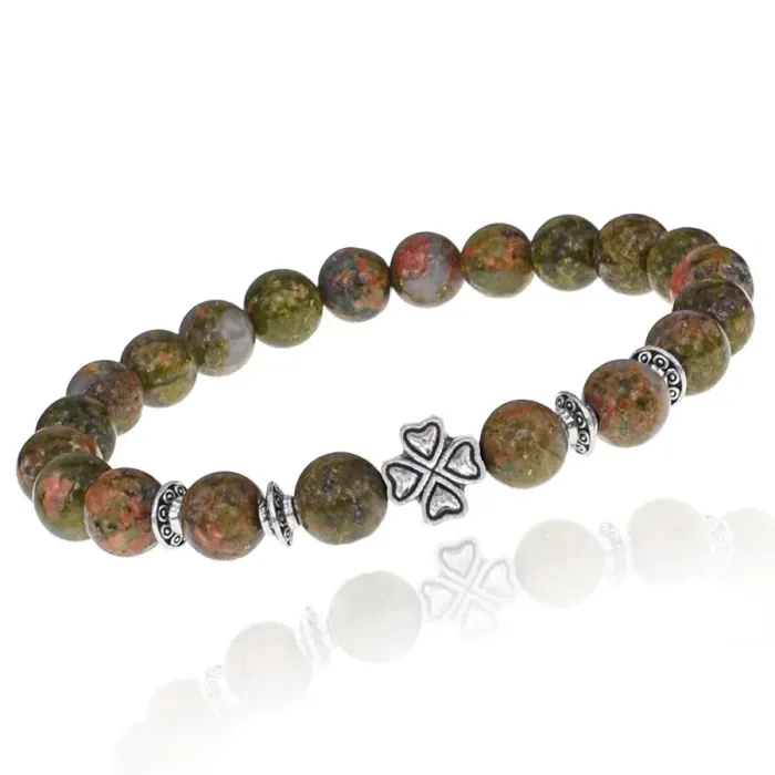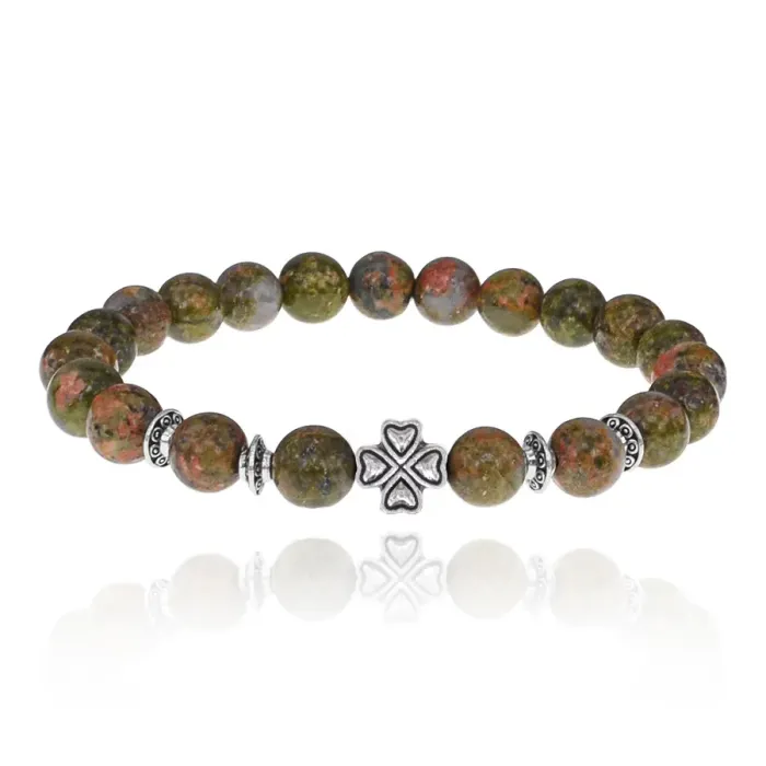 Браслет Клевер с нат.камнем Унакит 8мм BSHE-06-20S