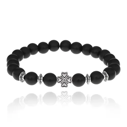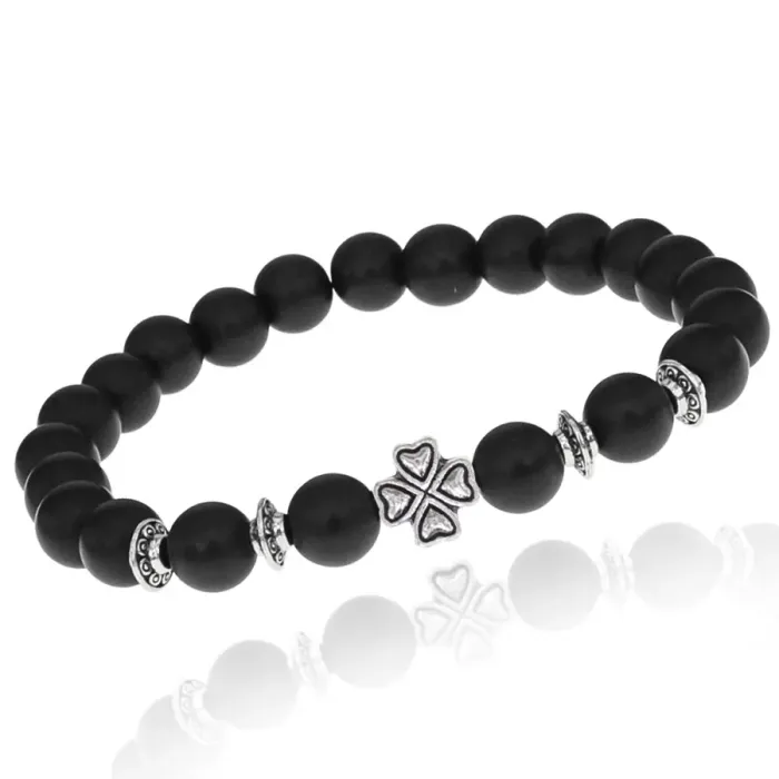 Браслет Клевер с синт. камнем Шунгит 8мм BSHE-06-24S