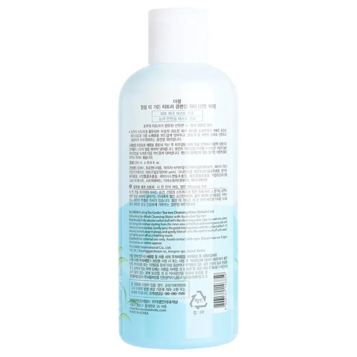 Очищающая вода Healing Tea Garden Tea Tree Cleansing Water от The Saem — это средство, разработанное для достижения идеальной чистоты и свежести кожи. Она эффективно удаляет загрязнения, одновременно обеспечивая интенсивное увлажнение. Подходит для ежедневного использования и рекомендована для всех типов кожи, включая сухую, обезвоженную, чувствительную, проблемную и раздражённую.