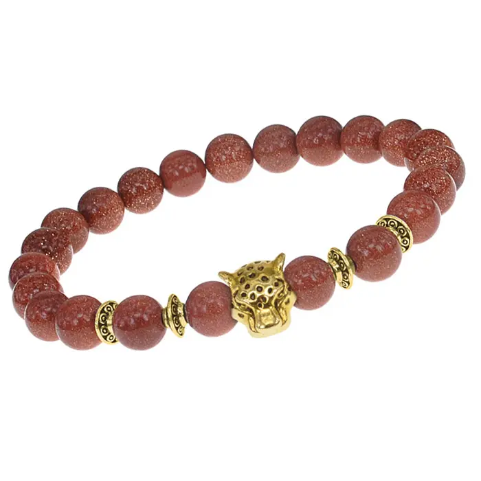 Браслет-амулет Леопард с синт. камнем Коричневый авантюрин 8мм BSHE-07-01G
