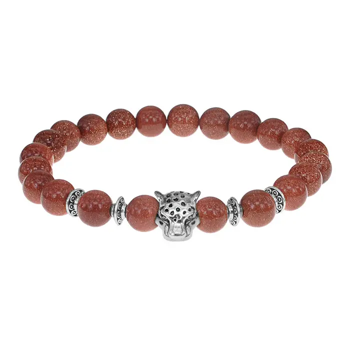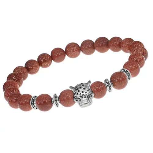 Браслет-амулет Леопард с синт. камнем Коричневый авантюрин 8мм BSHE-07-01S