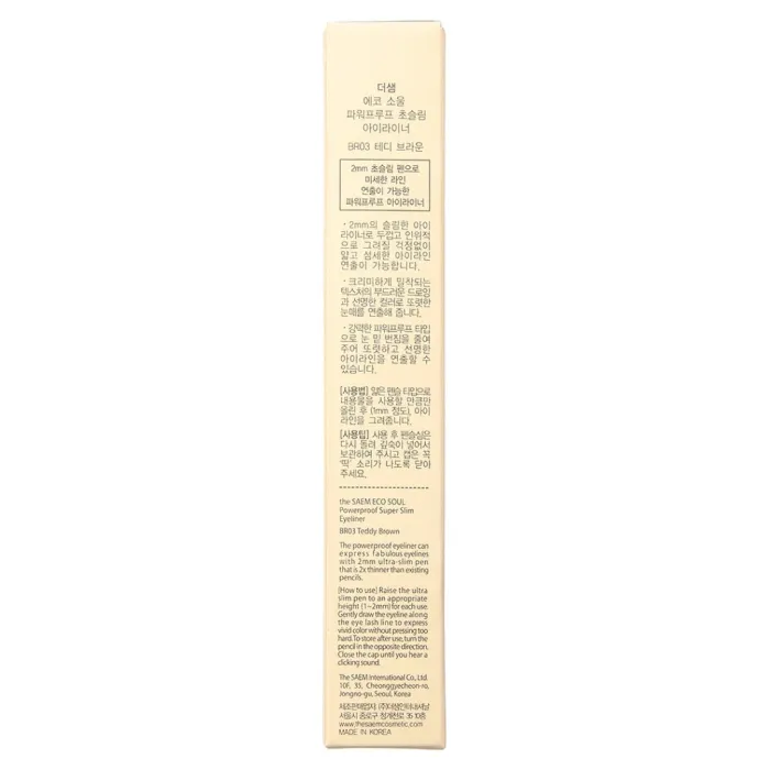 Тонкая подводка для глаз Eco Soul Powerproof Super Slim Eyeliner от The Saem — это идеальный инструмент для создания выразительного и ровного контура век. Специальная формула с минеральными ингредиентами обеспечивает плотное прилегание к коже, не царапая её. Автоматическая форма карандаша позволяет в одно касание создать контур необходимой толщины, а мягкая текстура облегчает нанесение. Подводка подходит как для верхнего, так и нижнего века.