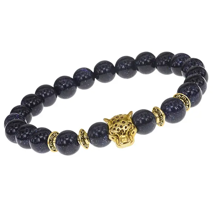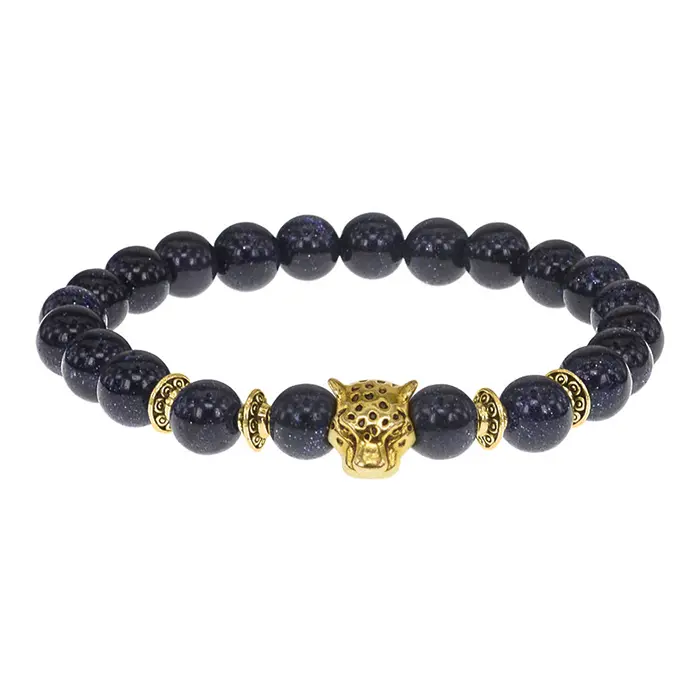 Браслет-амулет Леопард с синт. камнем Синий авантюрин 8мм BSHE-07-02G