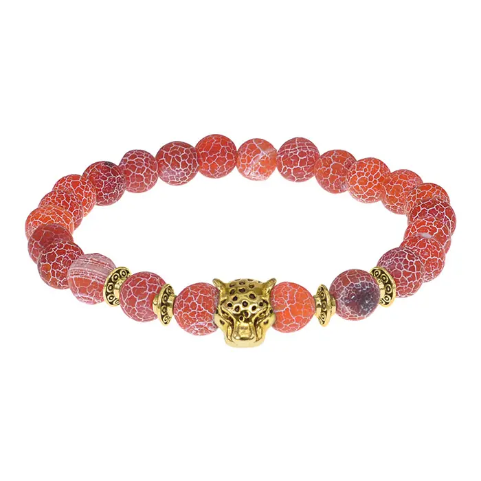 Стрейч-браслет-амулет с бусинами из африканского агата и декоративным элементом в виде леопарда.