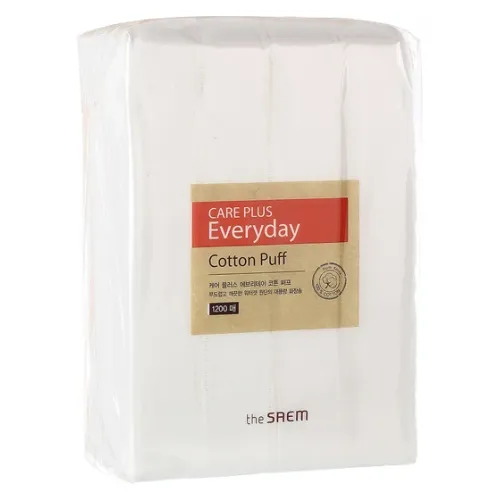 Косметические спонжи из 100% хлопка Care Plus Everyday Cotton Puff The Saem 1200 шт