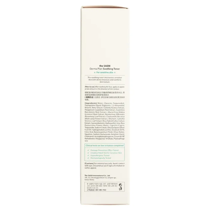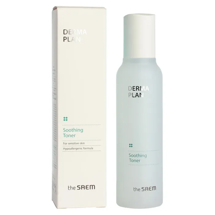 Успокаивающий тонер Derma Plan Soothing Toner от The Saem предназначен для ухода за сверхчувствительной кожей. Объём продукта составляет 155 мл. Тонер разработан с использованием уникального зелёного комплекса из семи растений, а также содержит аллантоин и бета-глюкан, что способствует эффективному восстановлению сухой кожи и придаёт лицу здоровый и свежий цвет.