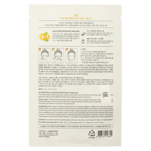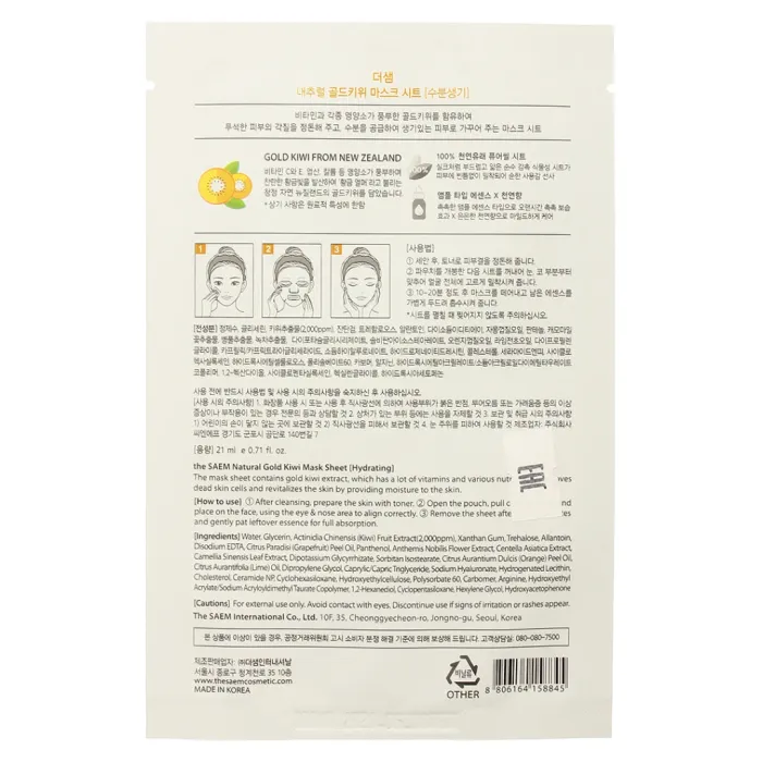 Маска на тканевой основе для лица с экстрактом киви Natural Gold Kiwi Mask Sheet 21 мл The Saem