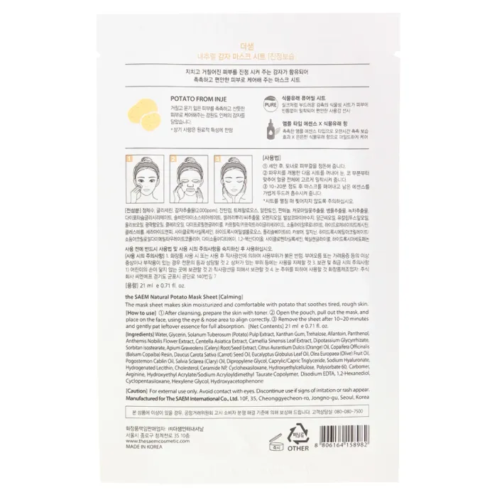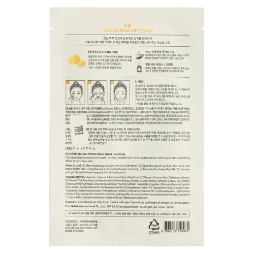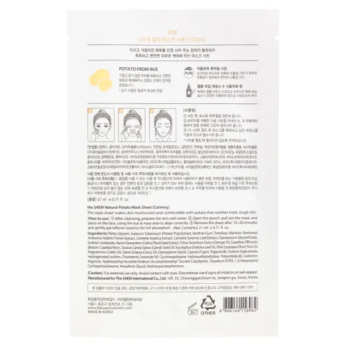 Маска на тканевой основе для лица с экстрактом картофеля Natural Potato Mask Sheet 21 мл The Saem