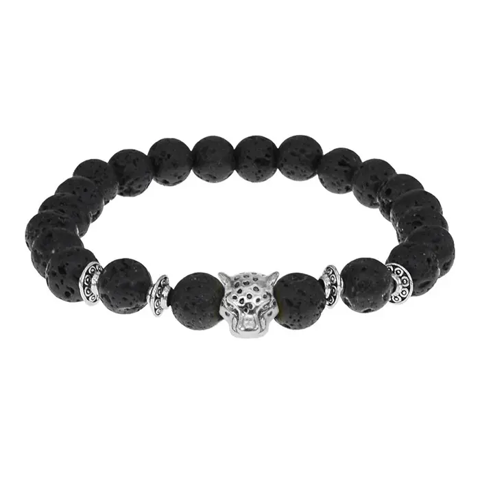 Браслет-амулет Леопард с нат. камнем Лава 8 мм BSHE-07-09S