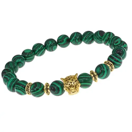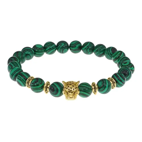 Браслет-амулет Леопард с синт. камнем Малахит 8мм BSHE-07-12G