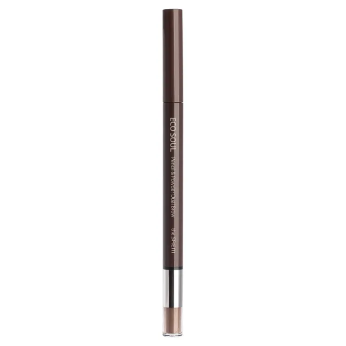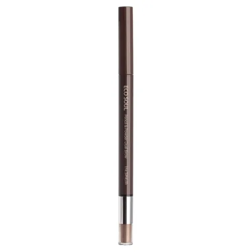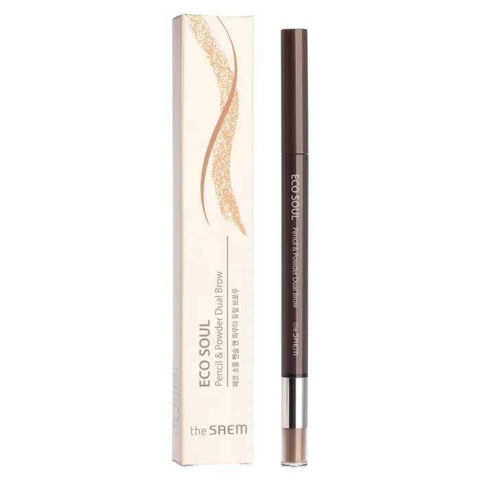 Карандаш-пудра для бровей Eco Soul Pencil & Powder Dual Brow от The Saem — это универсальное средство для создания идеальных бровей. Он подходит для формирования контура, легкой штриховки и фиксации волосков. Треугольный восковой грифель карандаша позволяет легко придать бровям желаемую форму и выполнить штриховку без частой заточки. Тонирующая матовая пудра наносится с помощью мягкого спонжа, заполняет пространства между волосками, создавая эффект объема и устраняя «слипшиеся» волоски.