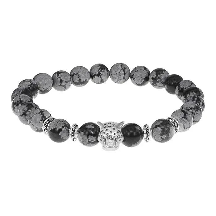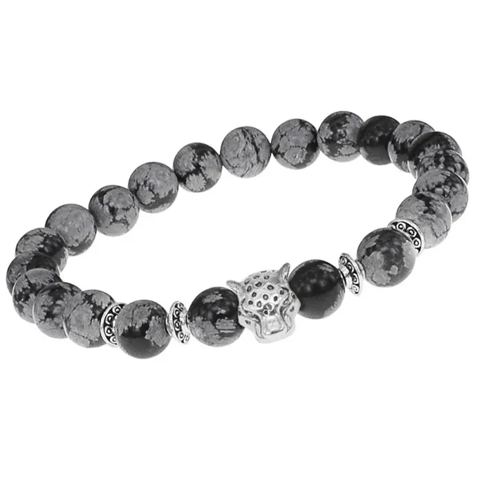 Браслет-амулет Леопард с нат. камнем Снежный обсидиан 8мм BSHE-07-14S