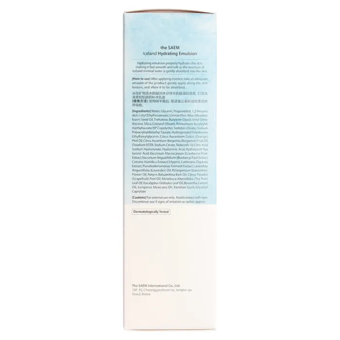 Эмульсия увлажняющая минеральная Iceland Hydrating Emulsion от The Saem — это эффективное средство для интенсивного увлажнения кожи. Объёмом 140 мл, эмульсия предназначена для насыщения кожи влагой, питания и смягчения, что способствует улучшению её внешнего вида и здоровья. Основу продукта составляет ледниковая минеральная вода из Исландии в сочетании с экстрактами исландского моха, морских водорослей и арктических ягод. Эти компоненты обеспечивают длительное увлажнение и питание кожи, поддерживая её молодость.