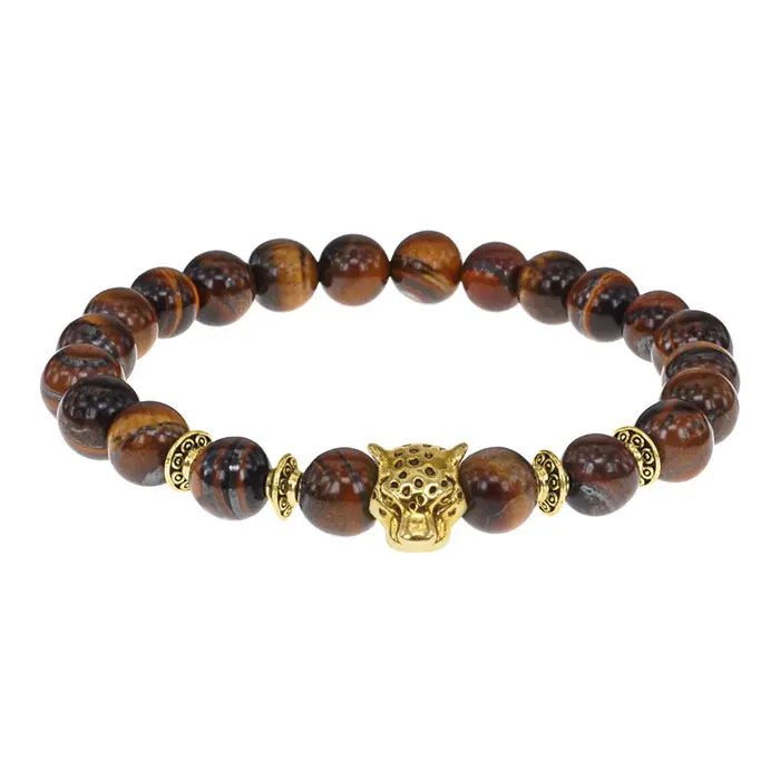 Браслет-амулет Леопард с нат. камнем Тигровый глаз 8мм BSHE-07-19G