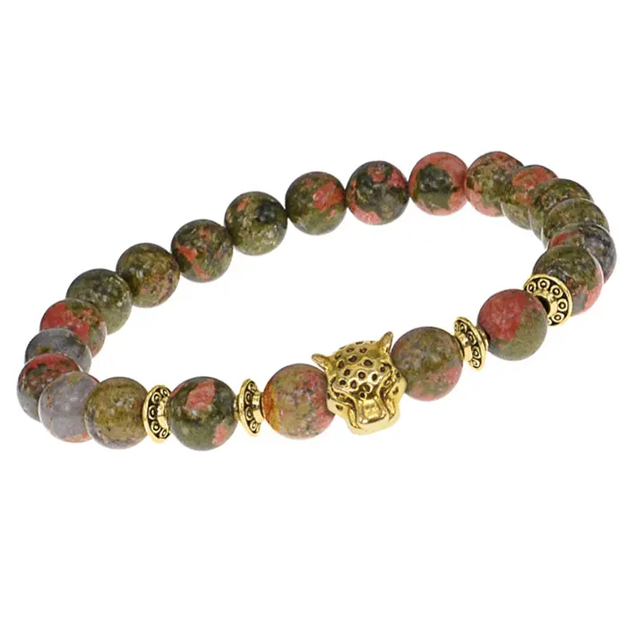 Браслет-амулет Леопард с нат. камнем Унакит 8мм BSHE-07-20G