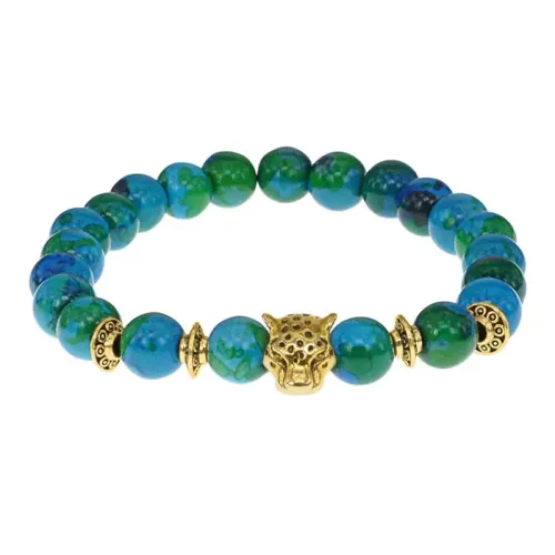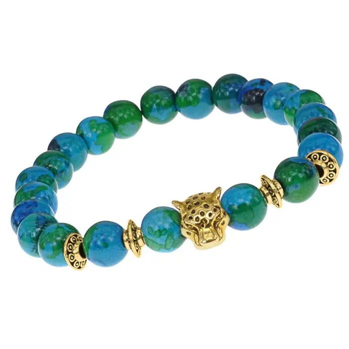 Браслет-амулет Леопард с синт. камнем Хризоколла 8мм BSHE-07-21G