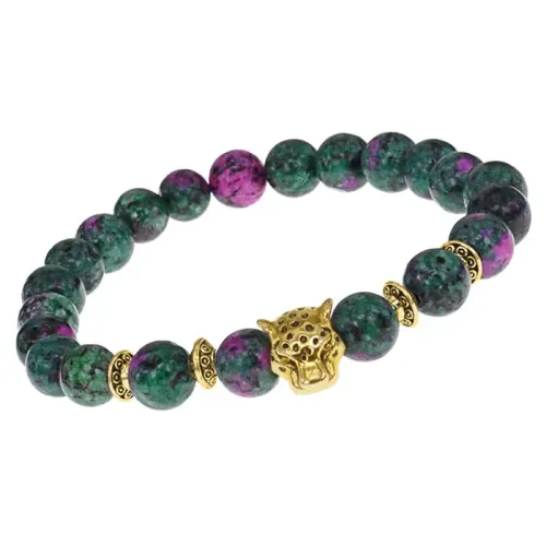 Браслет-амулет Леопард с синт. камнем Цоизит 8мм BSHE-07-22G