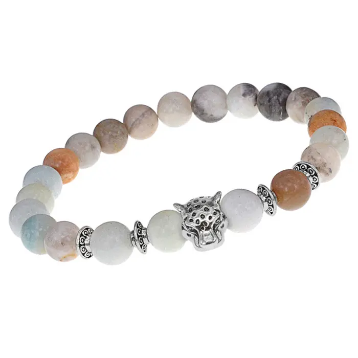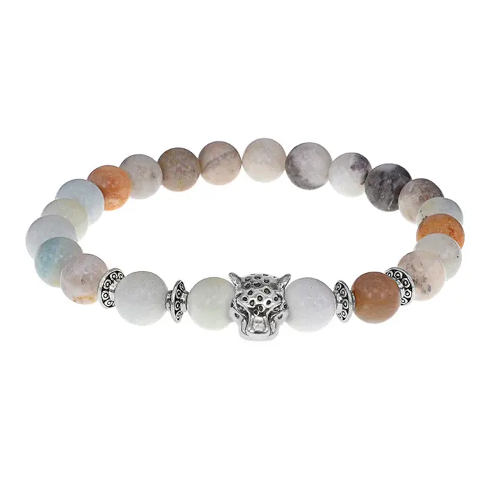 Браслет-амулет Леопард с нат. камнем Амазонит 8мм BSHE-07-26S