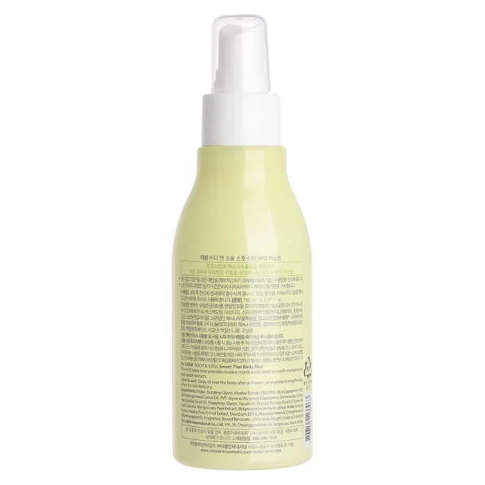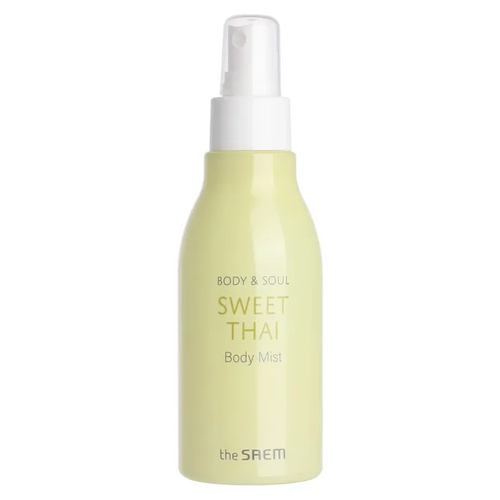 Увлажняющий мист для тела Body & Soul Sweet Thai Body Mist от корейского бренда The Saem — это идеальное средство для ежедневного ухода за кожей. Он быстро впитывается, не оставляя липкой пленки, и обладает приятным фруктовым ароматом. Подходит для всех типов кожи, обеспечивая питание и увлажнение.