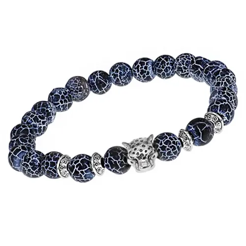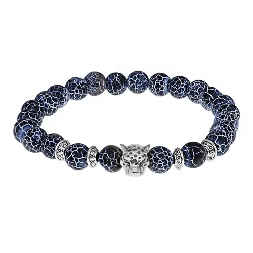 Браслет-амулет Леопард с нат. камнем синий Африканский агат 8мм BSHE-07-27S
