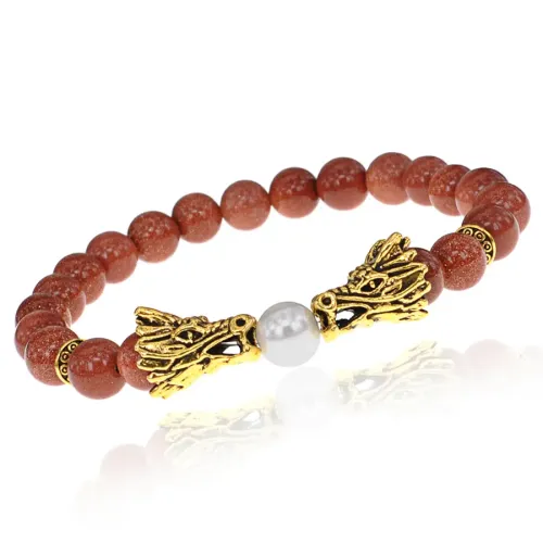 Браслет-амулет Драконы с синт. камнем Коричневый авантюрин 8мм BSHE-08-01G
