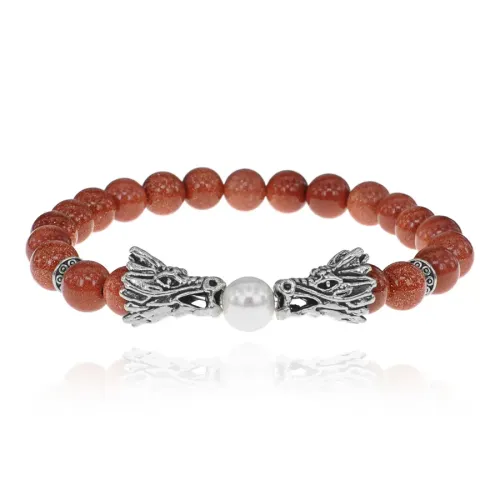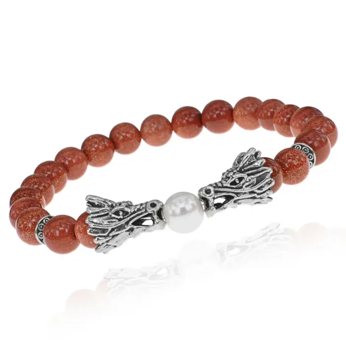 Браслет-амулет Драконы с синт. камнем Коричневый авантюрин 8мм BSHE-08-01S