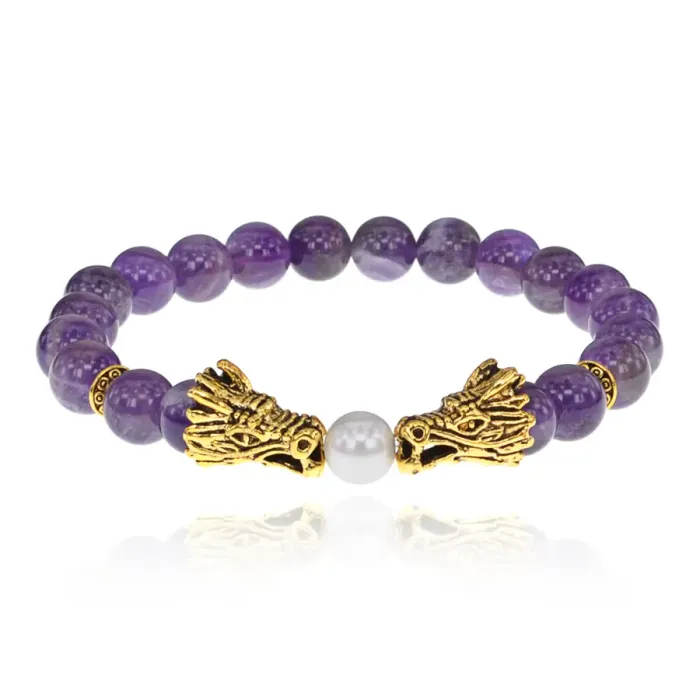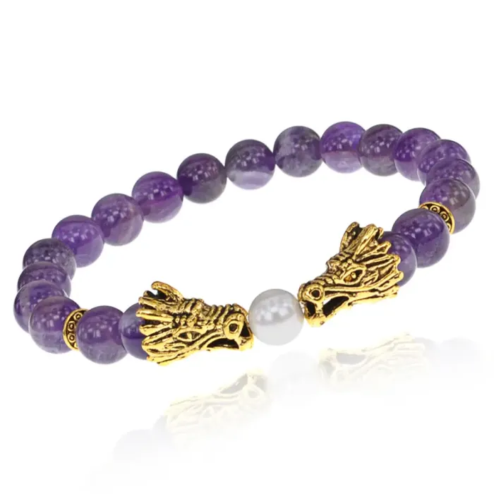 Браслет-амулет Драконы с нат. камнем Аметист 8мм BSHE-08-03G