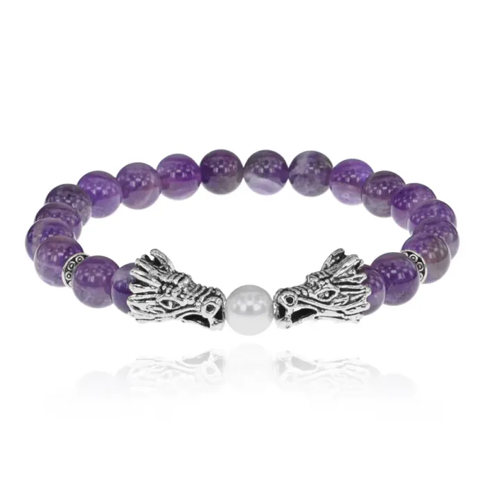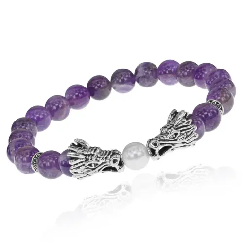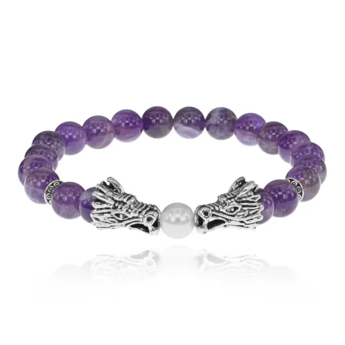 Браслет-амулет Драконы с нат. камнем Аметист 8мм BSHE-08-03S