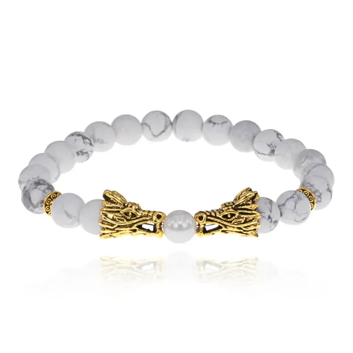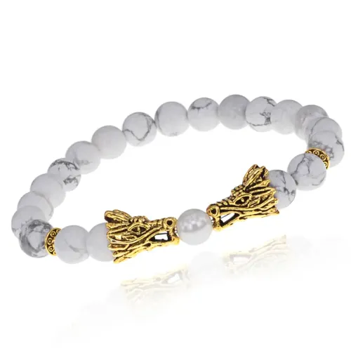 Браслет-амулет Драконы с нат. камнем Кахолонг 8мм BSHE-08-07G