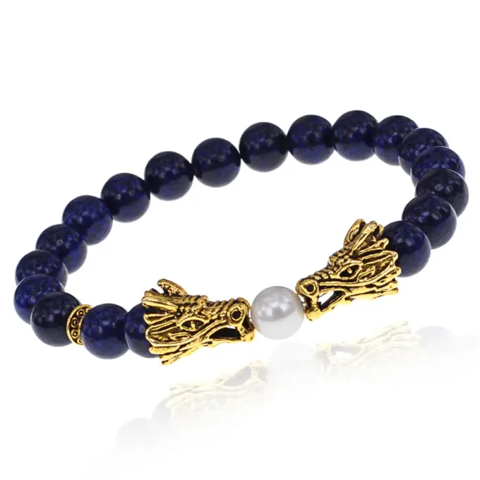 Браслет-амулет Драконы с нат.камнем Лазурит 8мм BSHE-08-10G