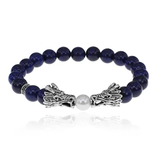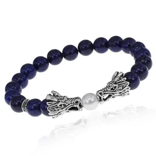 Браслет-амулет Драконы с нат. камнем Лазурит 8мм BSHE-08-10S